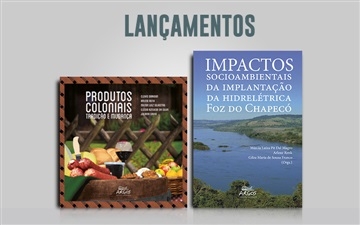 Na quinta-feira, 16 de junho, acontece a apresentação das obras “Impactos Socioambientais da Implantação da UHE Foz do Chapecó” e “Produtos Coloniais: tradição e mudança”. As obras foram publicadas pela Argos Editora da Unochapecó. Estes livros são o resultado de pesquisas desenvolvidas por professores da Unochapecó e de outras instituições de ensino e pesquisa. A apresentação das obras ocorre durante a programação do evento I Encontro sobre Meio Ambiente e Desenvolvimento na Grande Fronteira Mercosul, às 20h30, no Salão de Atos da Unochapecó. Os livros poderão ser adquiridos no local do evento, no qual haverá também a presença dos autores e sessão de autógrafos.
